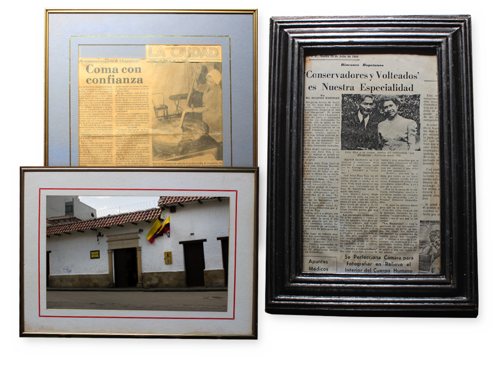 A finales del S XIX en Las Nieves, nacen Elisa y Bernarda Ángel Arenas, hijas de José María Ángel Margarita Arenas de Ángel, ellas se dedican a la profesión de banquetes para la sociedad de Bogotá de la época. Fundación y primeros años Las Ángel llegan a Chapinero en 1902 y toman en arriendo un humilde local al frente donde hoy reposan “Las Margaritas”, inicialmente invitan a cuanto cliente de Bogotá acude a la iglesia de Lourdes. En el año 1915 Elisa se casa con Julio Ríos y compran el local actual que construyen con tapia pisada y adobe de los chircales cercanos.